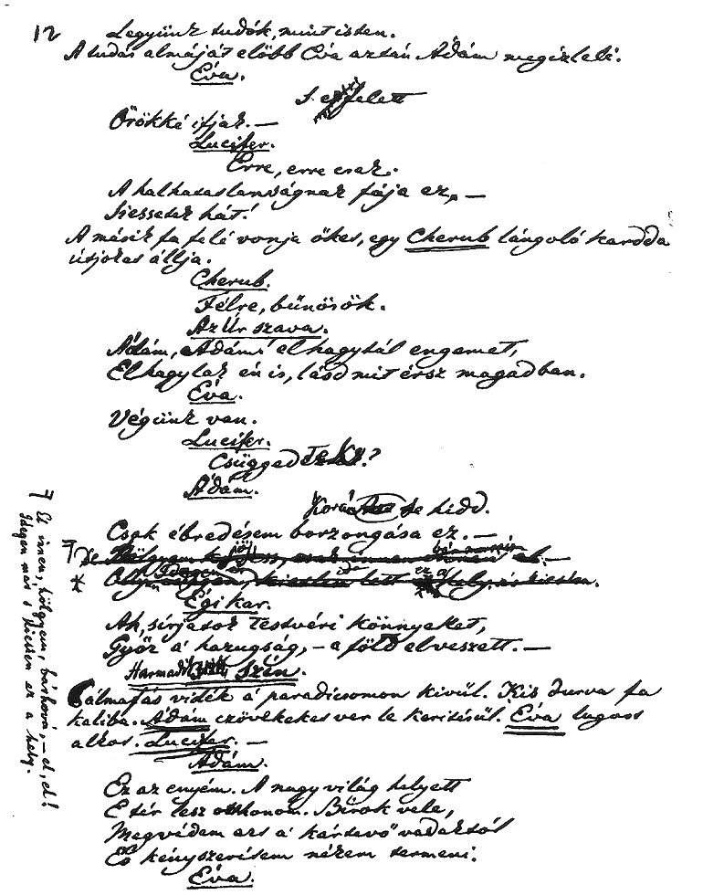 Madách vázlata a mű szerkezetéről, szereplőiről
