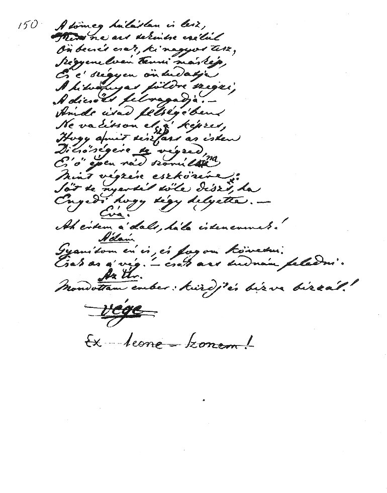 A kézirat utólsó lapja, a befejező sorok